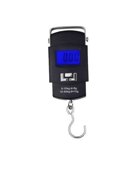Bascula colgante digital portátil, perfecta para medición del peso de equipajes, de alimentos y pesar los artículos que se enviarán a cualquier lugar al que vaya. Esta báscula colgante tiene luz de fondo LED. El mango es ajustable para un fácil almacenaje y permite el enganche de cosas.