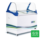 Barquillera con sistema de refrigeración de alta eficiencia, ideal para helados. Sus tapas deslizables de vidrio templado LOW-E y marco de aluminio anodizado garantizan la mejor conservación con mínima pérdida de frío.