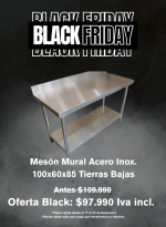 Mesón Mural 100% Acero Inoxidable 100x60x85 cms. Tierras Bajas